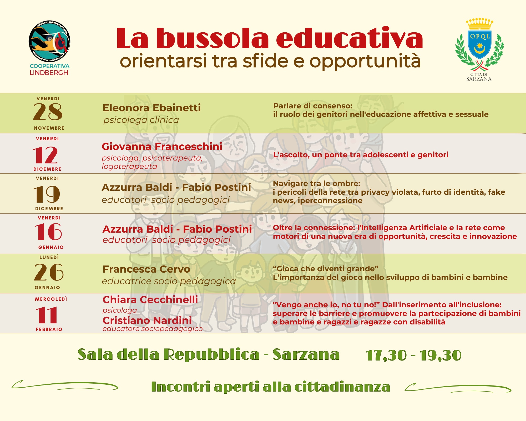 Gli incontri sono organizzati dal Comune di Sarzana e dalla Cooperativa Lindbergh.